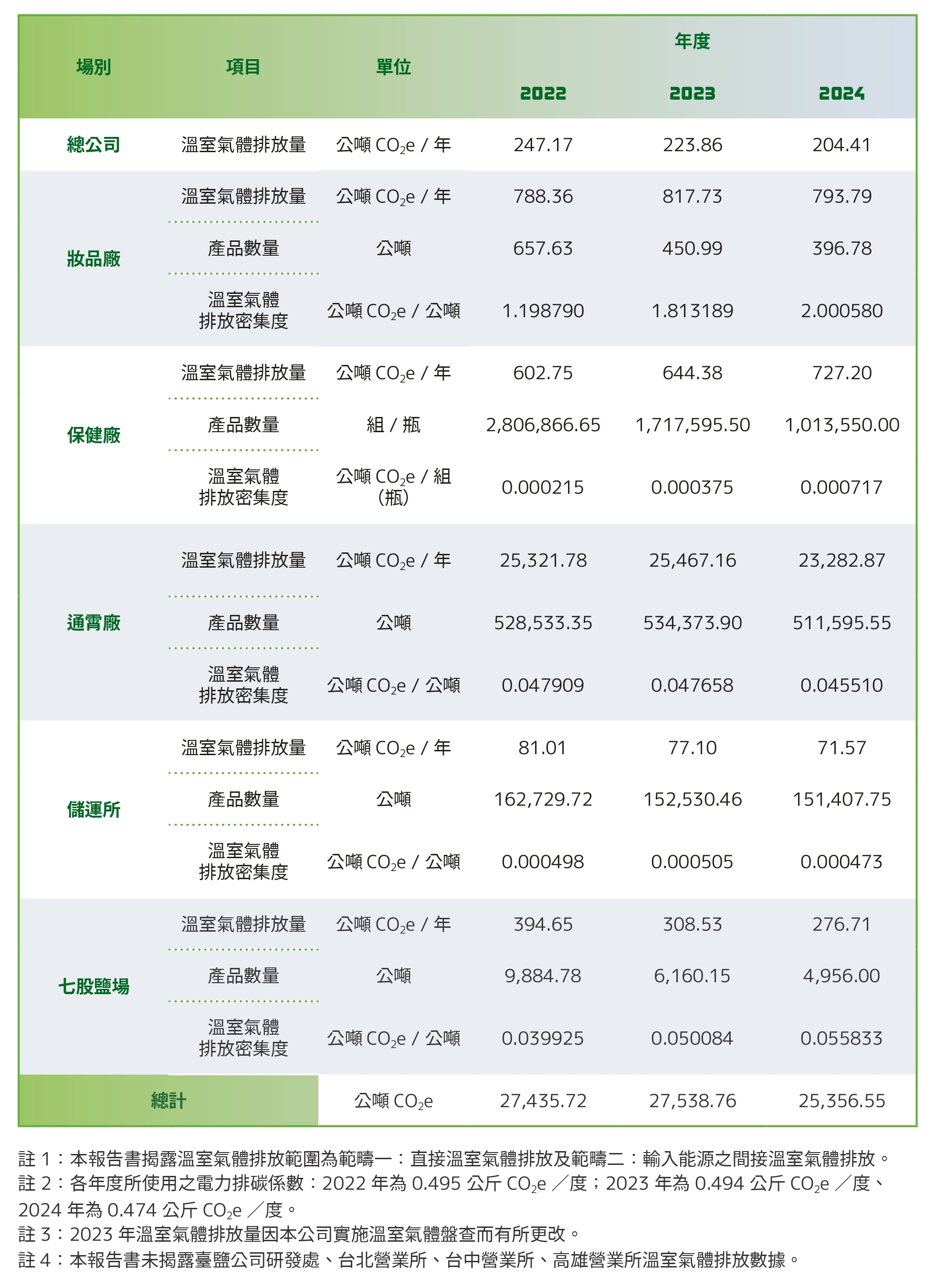 註:通霄精鹽廠因應環境部規範,自 2015 年起登錄溫室氣體排放量清冊、溫室氣體盤查報告書、查驗總結報告、查驗聲明書於事業溫室氣體排放量資訊平台。