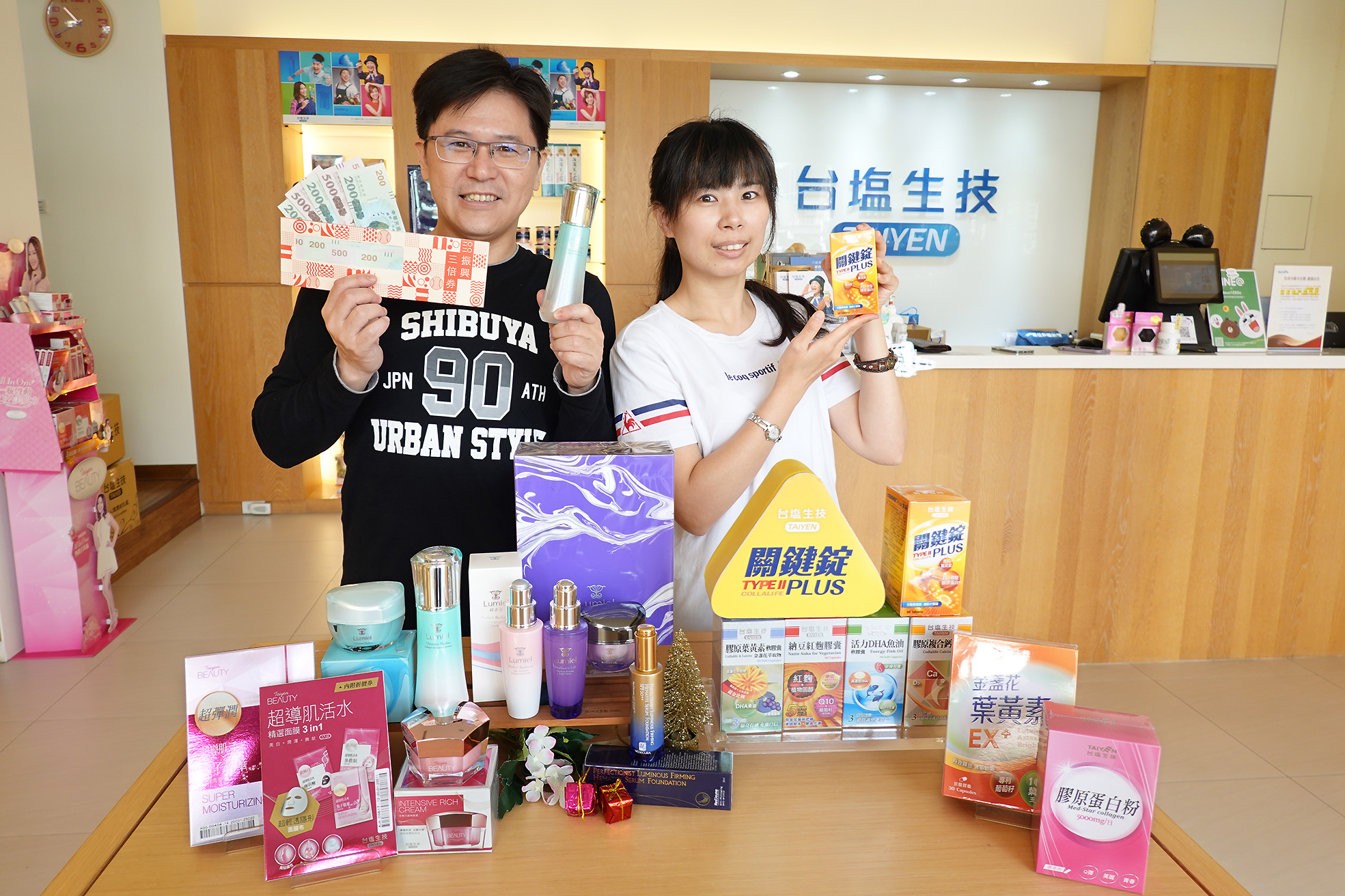 把握最後一波台鹽生技門市「政府三倍、台鹽加倍」強檔大放送!凡購買美容保養及保健品,使用實體振興券即可三千換五千、並加贈千元滿額折價券!