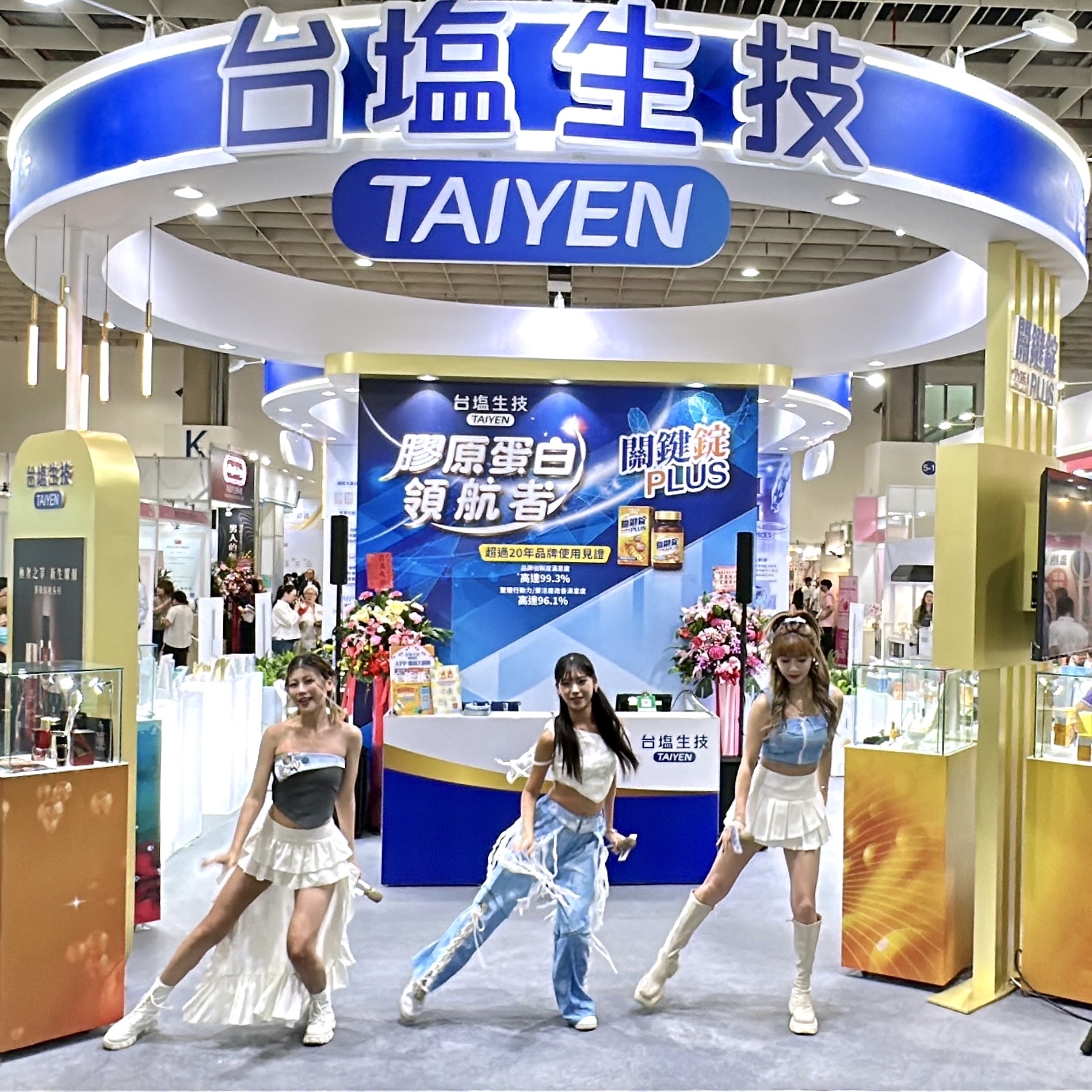 臺鹽公司董事長丁彥哲(左3)率團隊參展,從研發得獎到產品熱賣,凸顯現台塩生技「膠原蛋白領航者」國際級研發實力。